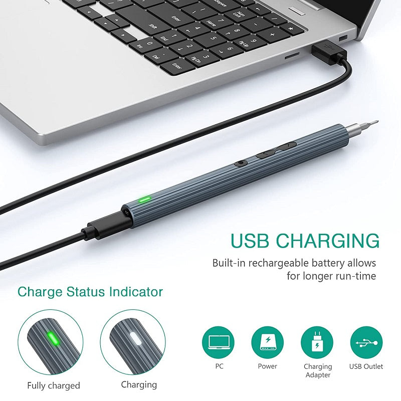 Η ενσωματωμένη επαναφορτιζόμενη μπαταρία των 350mAh είναι αρκετή για περίπου 400 χρήσεις και η πλήρη φόρτιση διαρκεί >70 λεπτά. Το LED είναι ενεργοποιημένο με λευκό φως κατά την φόρτιση και πράσινο όταν ολοκληρωθεί. Η φόρτιση πραγματοποιείται μέσω της θύρας USB Type-C. Επιπλέον, υπάρχουν 3 φώτα LED που παρέχουν καθαρή όραση κατά την εργασία.