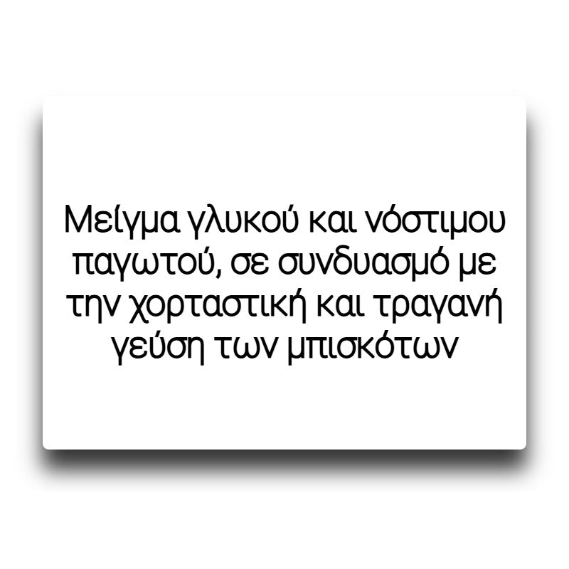 Αγκαλιάστε το απολαυστικό μείγμα γλυκού και νόστιμου παγωτού, σε συνδυασμό με την χορταστική και τραγανή γεύση των μπισκότων, για μια δροσερή απόλαυση που θα ενθουσιάσει τους γευστικούς σας κάλυκες.