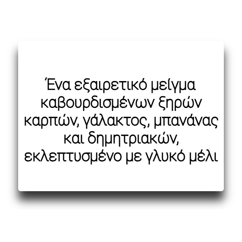 Ψάχνετε για μια υπέροχη γεύση σνακ-πρωινού-μελιού; Λοιπόν, δοκιμάστε το νέο μας Honey Hornet. Με ένα εξαιρετικό μείγμα καβουρδισμένων ξηρών καρπών, γάλακτος, μπανάνας και δημητριακών, εκλεπτυσμένο με γλυκό μέλι, σίγουρα θα κάνει τη δουλειά! Προχωρήστε και κάντε μια βόλτα με το Honey Hornet!