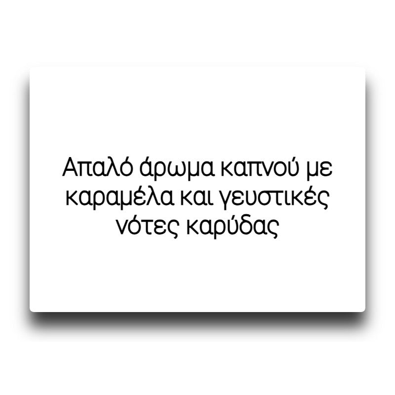 Απαλό άρωμα καπνού με καραμέλα και γευστικές νότες καρύδας.
