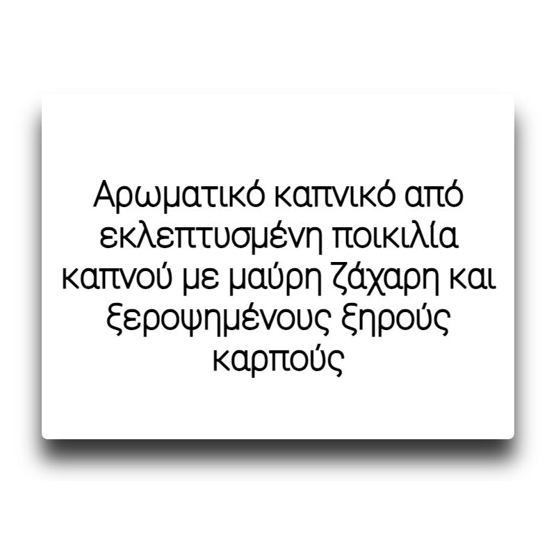 Αρωματικό καπνικό από εκλεπτυσμένη ποικιλία καπνού με μαύρη ζάχαρη και ξεροψημένους ξηρούς καρπούς.