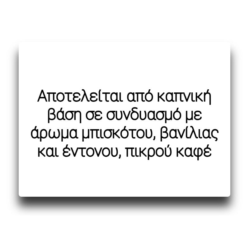 Αποτελείται από καπνική βάση σε συνδυασμό με άρωμα μπισκότου, βανίλιας και έντονου, πικρού καφέ!