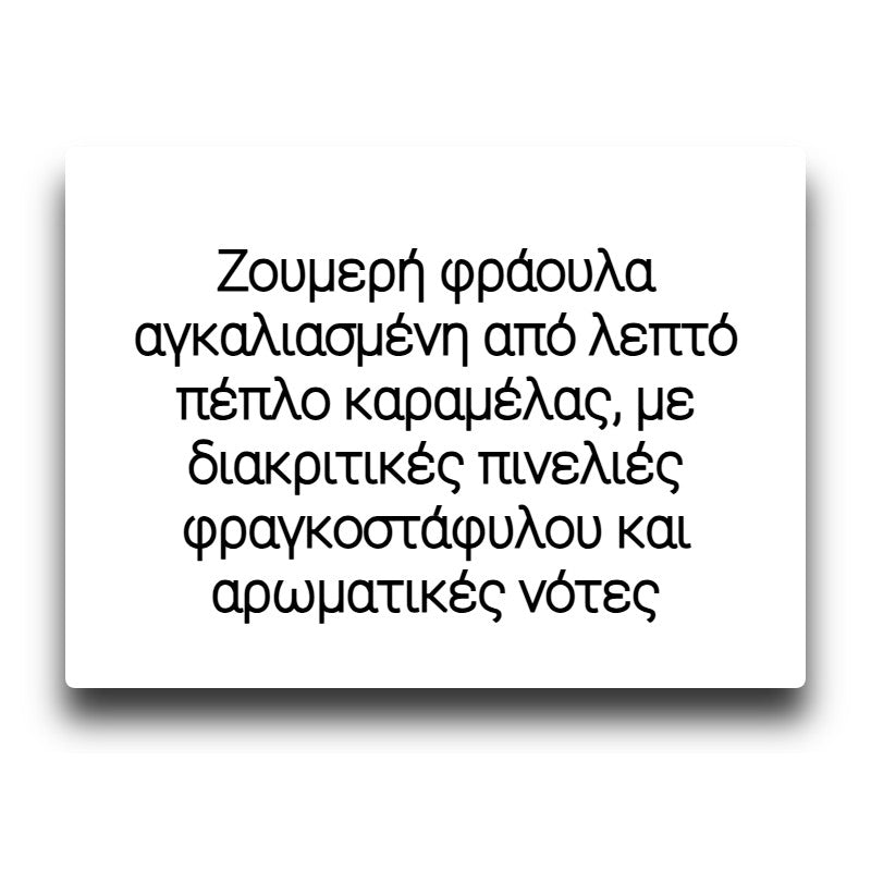 Ζουμερή φράουλα αγκαλιασμένη από λεπτό πέπλο καραμέλας, με διακριτικές πινελιές φραγκοστάφυλου και αρωματικές νότες που δημιουργούν ένα αισθησιακό, φρουτώδες ελιξίριο.