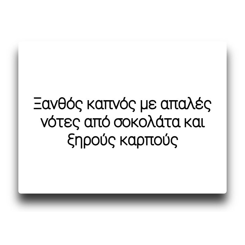 Ξανθός καπνός με απαλές νότες από σοκολάτα και ξηρούς καρπούς. Μια καπνική γεύση με μικρές δόσεις γλυκύτητας.
