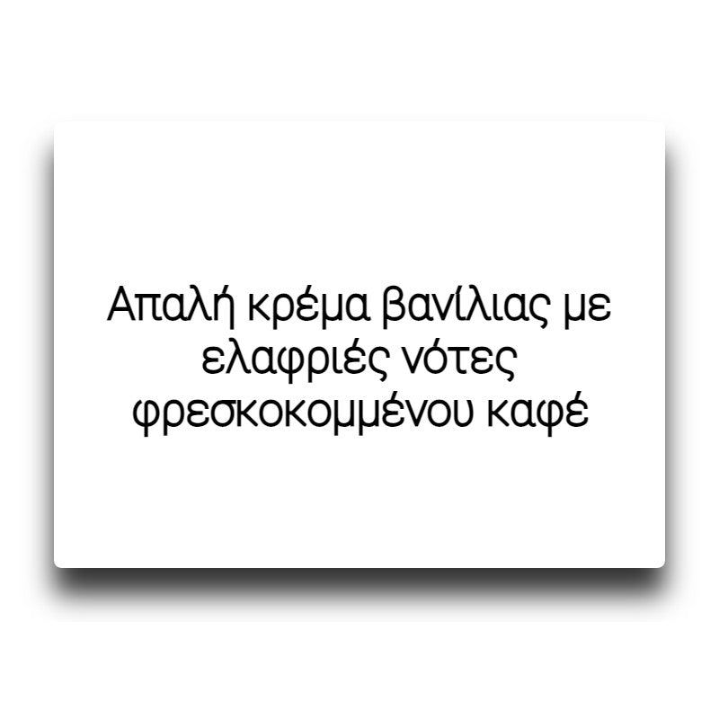 Απαλή κρέμα βανίλιας με ελαφριές νότες φρεσκοκομμένου καφέ.