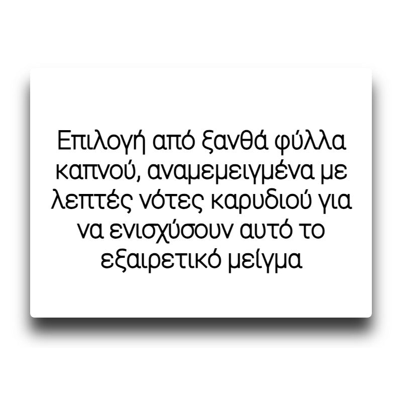 Επιλογή από ξανθά φύλλα καπνού, αναμεμειγμένα με λεπτές νότες καρυδιού για να ενισχύσουν αυτό το εξαιρετικό μείγμα.