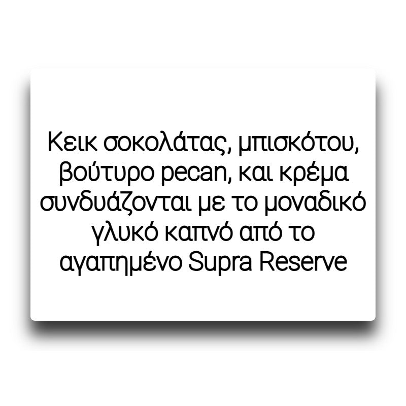 Kεικ σοκολάτας, μπισκότου, βούτυρο pecan, και κρέμα συνδυάζονται με το μοναδικό γλυκό καπνό από το αγαπημένο Supra Reserve, για μια απόλυτη εμπειρία γεύσης.
