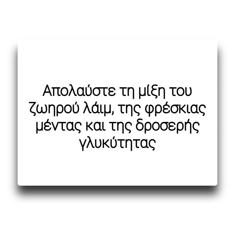 Απολαύστε τη μίξη του ζωηρού λάιμ, της φρέσκιας μέντας και της δροσερής γλυκύτητας.