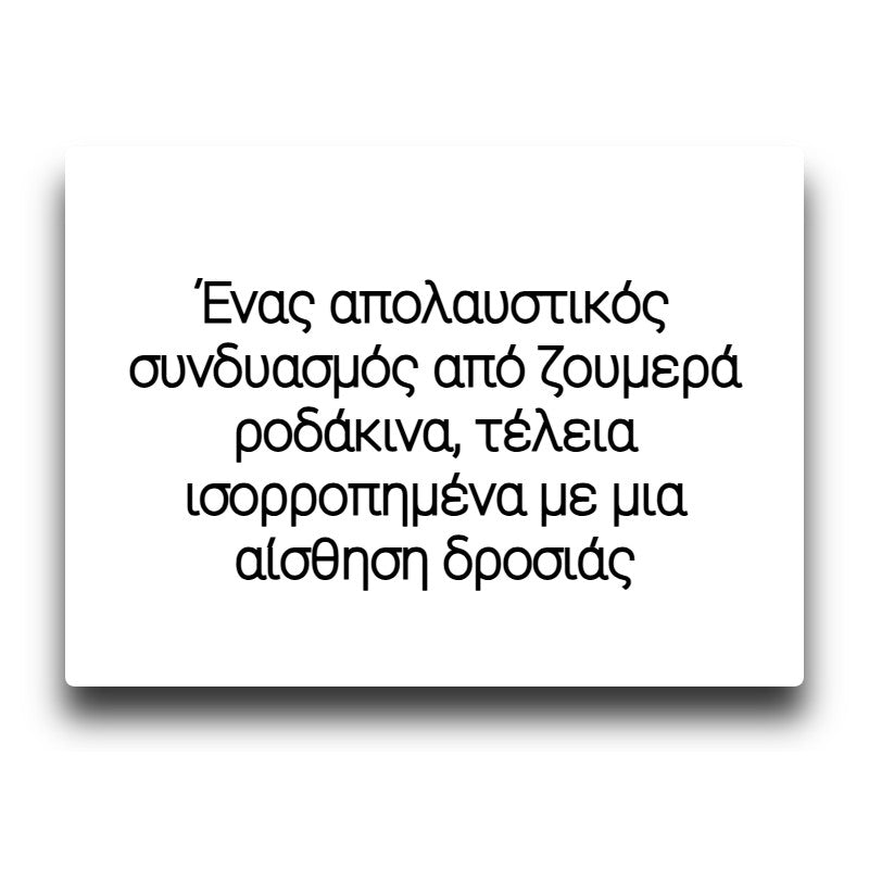 Ένας απολαυστικός συνδυασμός από ζουμερά ροδάκινα, τέλεια ισορροπημένα με μια αίσθηση δροσιάς.