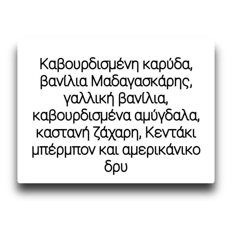 Άρωμα καβουρδισμένης καρύδας, βανίλια Μαδαγασκάρης και γαλλική βανίλια, εμπλουτισμένο με καβουρδισμένα αμύγδαλα, καστανή ζάχαρη και διακριτικά αρώματα από Κεντάκι μπέρμπον και αμερικάνικο δρυ.