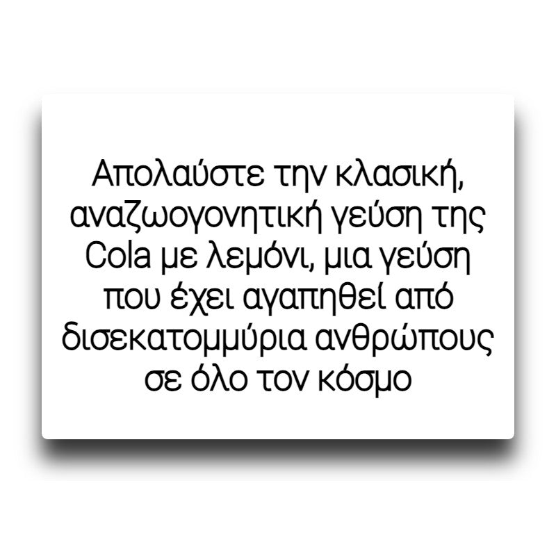Απολαύστε την κλασική, αναζωογονητική γεύση της Cola με λεμόνι, μια γεύση που έχει αγαπηθεί από δισεκατομμύρια ανθρώπους σε όλο τον κόσμο.