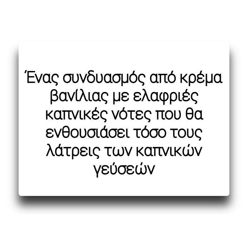 Ένας συνδυασμός από κρέμα βανίλιας με ελαφριές καπνικές νότες που θα ενθουσιάσει τόσο τους λάτρεις των καπνικών γεύσεων όσο και αυτών που προτιμούν τους πιο γλυκούς συνδυασμούς.