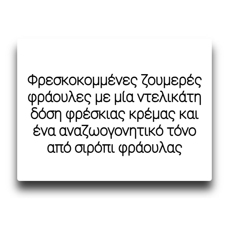 Φρεσκοκομμένες ζουμερές φράουλες με μία ντελικάτη δόση φρέσκιας κρέμας και ένα αναζωογονητικό τόνο από σιρόπι φράουλας. Μία γεύση που δεν θα μπορείτε να αφήσετε!