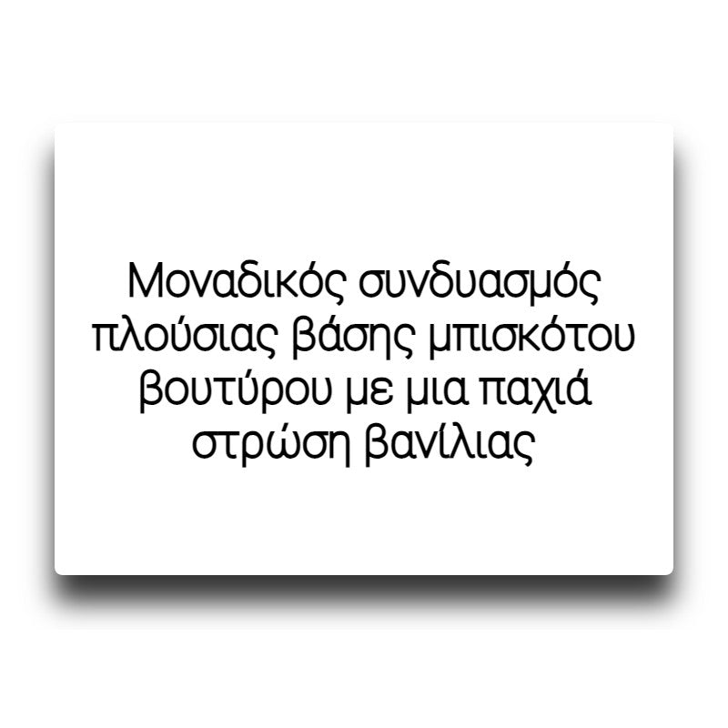 Μοναδικός συνδυασμός πλούσιας βάσης μπισκότου βουτύρου με μια παχιά στρώση βανίλιας.