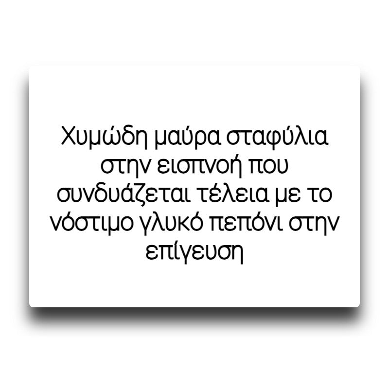 Καλωσορίστε τον νέο αγαπημένο σας συνδυασμό φρούτων on the rocks. Απολαύστε τα χυμώδη μαύρα σταφύλια στην εισπνοή που συνδυάζεται τέλεια με το νόστιμο γλυκό πεπόνι στην επίγευση για μία συναρπαστική ατμιστική εμπειρία.