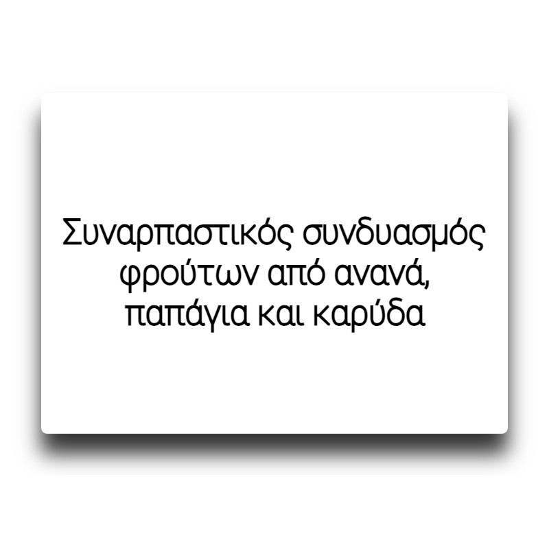 Εάν είστε λάτρης των γλυκών και κρεμωδών γεύσεων, τότε έχουμε την ιδανική απόλαυση για εσάς! Σας παρουσιάζουμε έναν συναρπαστικό συνδυασμό φρούτων από ανανά, παπάγια και καρύδα, που εγγυάται να σας κατακτήσει με την γευστική του απόλαυση. Έχουμε πάει τη σειρά των εξωτικών φρούτων, σε άλλο επίπεδο!