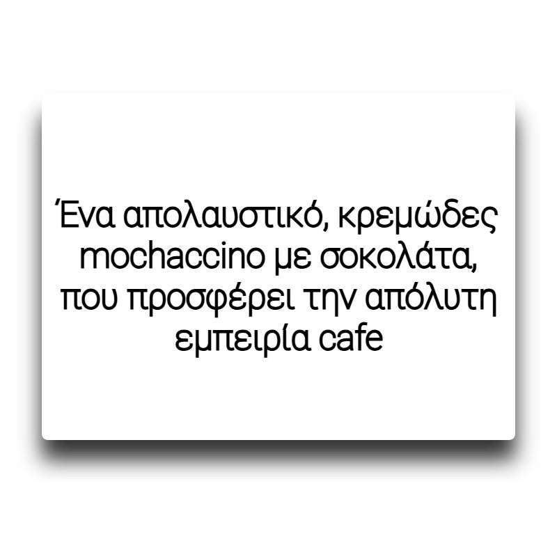Ένα απολαυστικό, κρεμώδες mochaccino με σοκολάτα, που προσφέρει την απόλυτη εμπειρία cafe. Συνδυάζει την απαλή γεύση καφέ με πλούσια σοκολάτα και βελούδινη υφή, ιδανικό για τους λάτρεις των γλυκών, καφεϊνούχων ατμισμάτων.