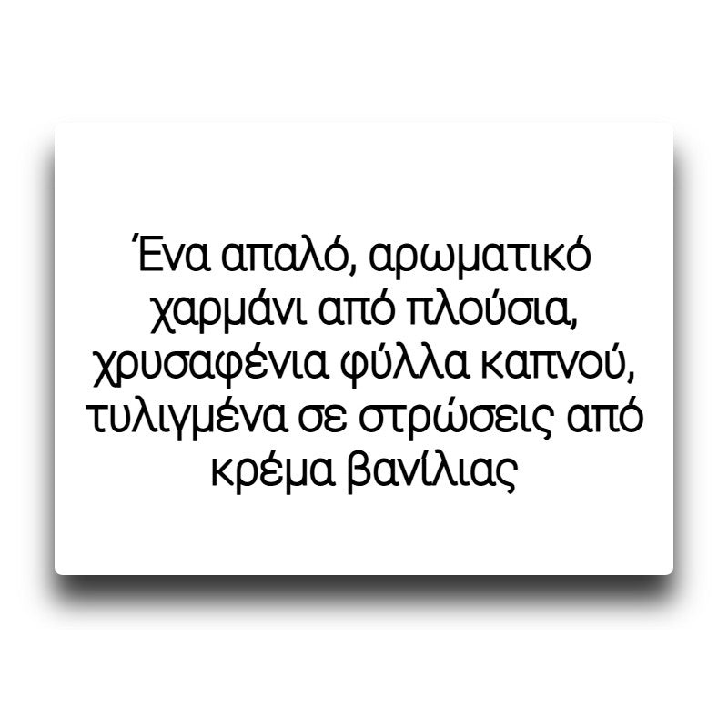 Ένα απαλό, αρωματικό χαρμάνι από πλούσια, χρυσαφένια φύλλα καπνού, τυλιγμένα σε στρώσεις από κρέμα βανίλιας.