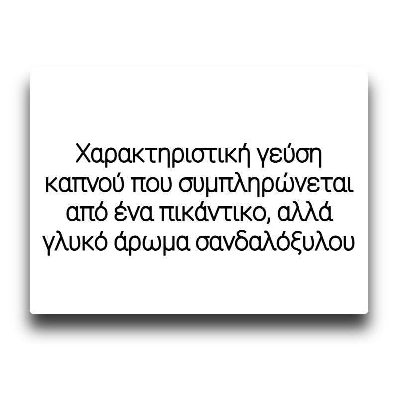 Ιδανική επιλογή για το ξεκίνημα ενός ατμιστή. Πρόκειται για ένα υγρό αναπλήρωσης με χαρακτηριστική γεύση του καπνού που συμπληρώνεται από ένα πικάντικο, αλλά γλυκό άρωμα σανδαλόξυλου. Δοκιμάστε το!