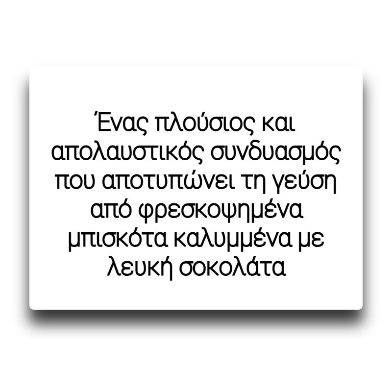 Ένας πλούσιος και απολαυστικός συνδυασμός που αποτυπώνει τη γεύση από φρεσκοψημένα μπισκότα καλυμμένα με λευκή σοκολάτα. Η ζεστή, βουτυρένια βάση μπισκότου αποκαλύπτει νότες καραμελωμένης ζάχαρης και απαλής βανίλιας, ισορροπημένες τέλεια με τη βελούδινη γλυκύτητα της λιωμένης λευκής σοκολάτας. Κάθε εισπνοή θυμίζει δαγκωνιά σε μαλακό, αφράτο μπισκότο — με μια πολυτελή επίγευση που μένει.