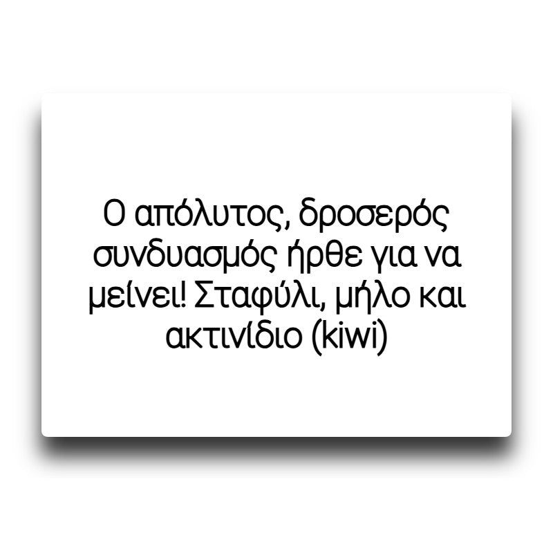 Ο απόλυτος, δροσερός συνδυασμός ήρθε για να μείνει! Σταφύλι, μήλο και ακτινίδιο (kiwi)! Ένα φρουτένιο πάντρεμα που θα εκπλήξει και τους πιο φανατικούς λάτρεις των φρούτων!