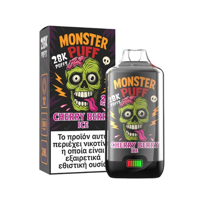 Με μπαταρία 850mAh, LED οθόνη για άμεση ένδειξη μπαταρίας, ρυθμιζόμενη ροή αέρα, childproof προστασία και φόρτιση USB Type‑C, το Monster Puff 28K έχει σχεδιαστεί για να προσφέρει σταθερή, δυνατή και καθαρή γεύση από την πρώτη μέχρι την τελευταία εισπνοή.