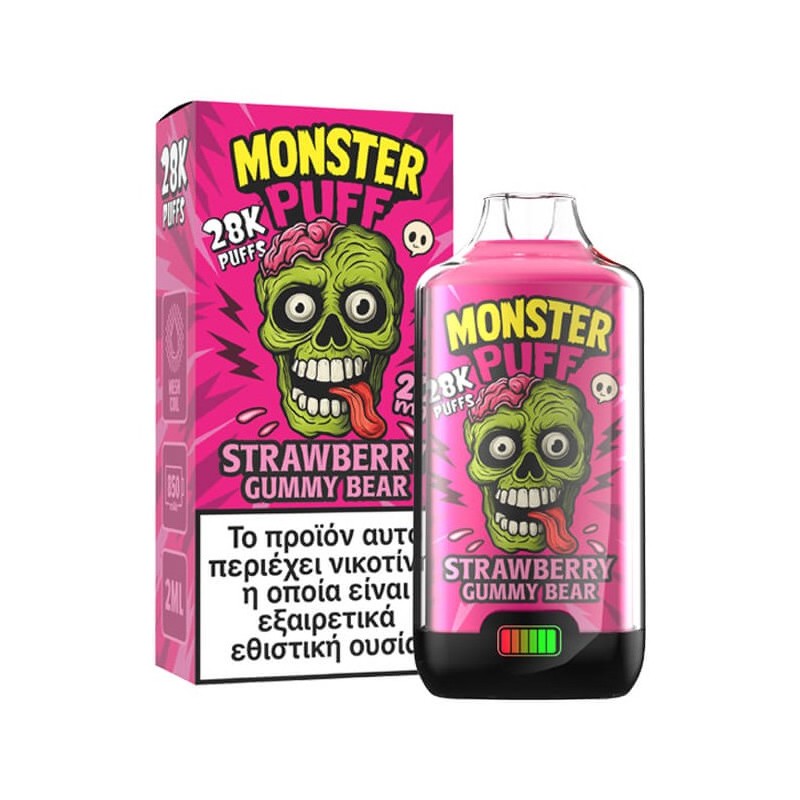 Με μπαταρία 850mAh, LED οθόνη για άμεση ένδειξη μπαταρίας, ρυθμιζόμενη ροή αέρα, childproof προστασία και φόρτιση USB Type‑C, το Monster Puff 28K έχει σχεδιαστεί για να προσφέρει σταθερή, δυνατή και καθαρή γεύση από την πρώτη μέχρι την τελευταία εισπνοή.