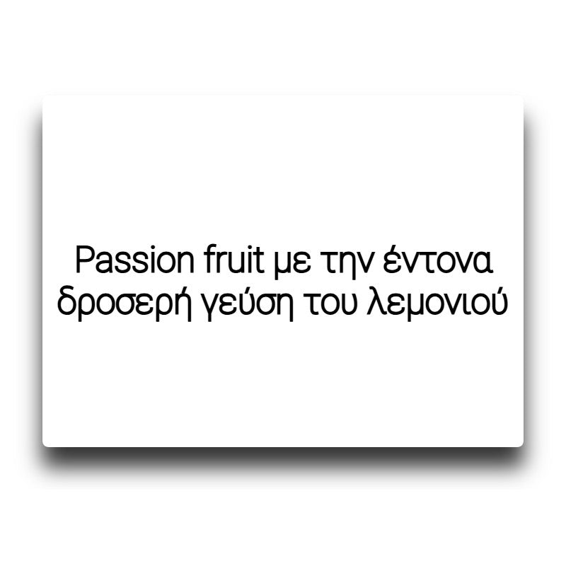 Μια εορταστική έκρηξη εσπεριδοειδών! Αυτό το ζωντανό μείγμα συνδυάζει την τροπική γοητεία του passion fruit με την έντονα δροσερή γεύση του λεμονιού. Ιδανικό για στιγμές που χρειάζεσαι μια πινελιά ζωντάνιας στη ζωή σου! Viva la citrus!