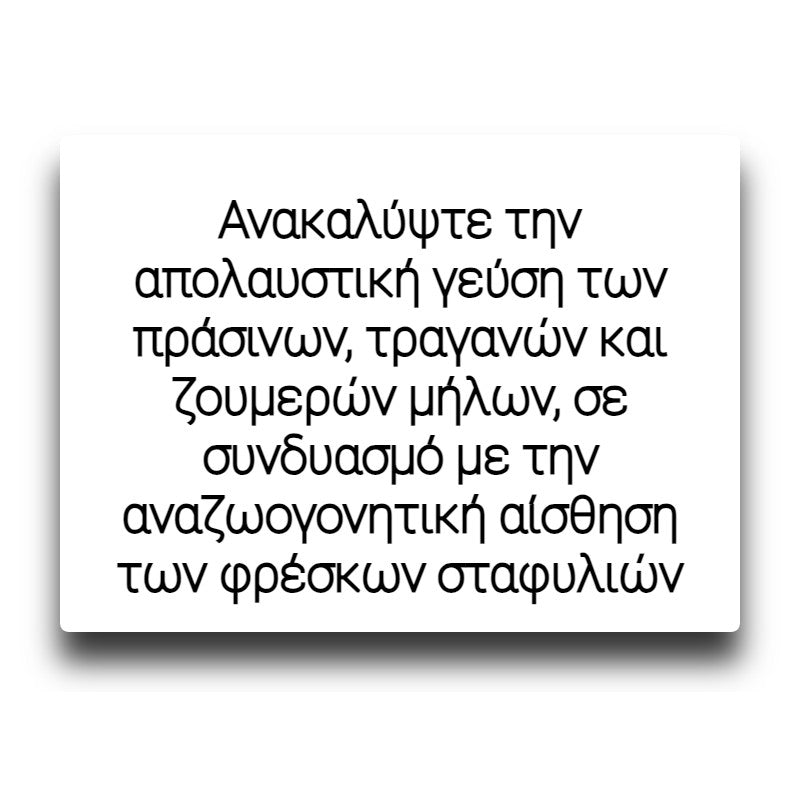 Ανακαλύψτε την απολαυστική γεύση των πράσινων, τραγανών και ζουμερών μήλων, σε συνδυασμό με την αναζωογονητική αίσθηση των φρέσκων σταφυλιών. Ένας φρουτώδης συνδυασμός που προσφέρει μια δροσερή και ευχάριστη ατμιστική εμπειρία, ιδανική για κάθε στιγμή της ημέρας.