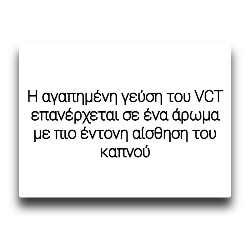 Η αγαπημένη γεύση του VCT επανέρχεται σε ένα άρωμα με πιο έντονη αίσθηση του καπνού.