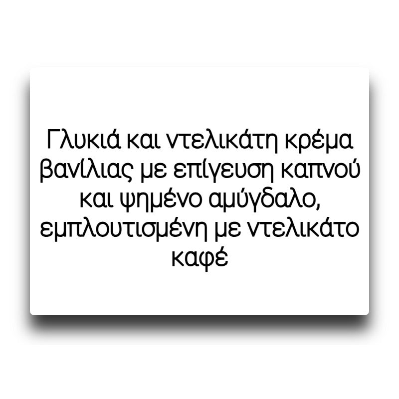 Γλυκιά και ντελικάτη κρέμα βανίλιας με επίγευση καπνού και ψημένο αμύγδαλο. Ο γευστικός συνδυασμός που έχει βραβευθεί για την μοναδική και ξεχωριστή γεύση του, σε μια παραλλαγή, εμπλουτισμένη με ντελικάτο καφέ!
