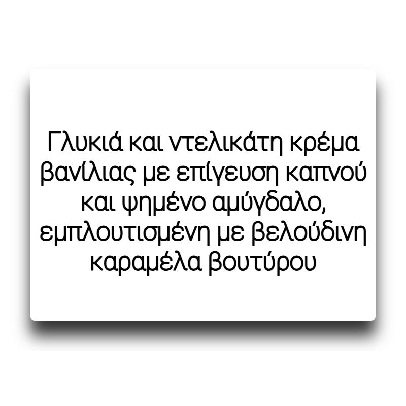 Γλυκιά και ντελικάτη κρέμα βανίλιας με επίγευση καπνού και ψημένο αμύγδαλο. Ο γευστικός συνδυασμός που έχει βραβευθεί για την μοναδική και ξεχωριστή γεύση του, σε μια ξεχωριστή παραλλαγή, εμπλουτισμένη με βελούδινη καραμέλα βουτύρου!