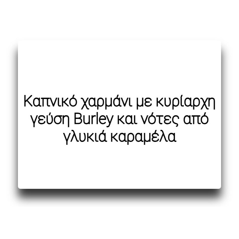 Καπνικό χαρμάνι με κυρίαρχη γεύση Burley και νότες από γλυκιά καραμέλα σε έναν έντονο συνδυασμό με premium αποτέλεσμα. Ένα δυνατό flag killer.