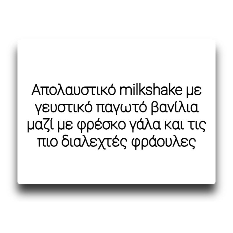 Απολαυστικό milkshake με γευστικό παγωτό βανίλια μαζί με φρέσκο γάλα και τις πιο διαλεχτές φράουλες. Συνδυασμός που αναζωογονεί και υπόσχεται να γίνει η νέα σας αγάπη!