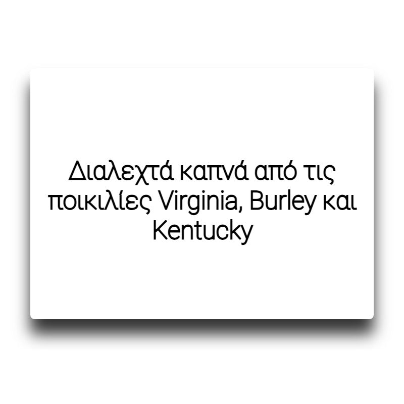 Διαλεχτά καπνά από τις ποικιλίες Virginia, Burley και Kentucky ενωθήκαν σε ένα χαρμάνι για να δημιουργήσουν την καλύτερη γεύση στριφτού. Το καλύτερο υγρό για την είσοδο σας στον χώρο του ατμού!
