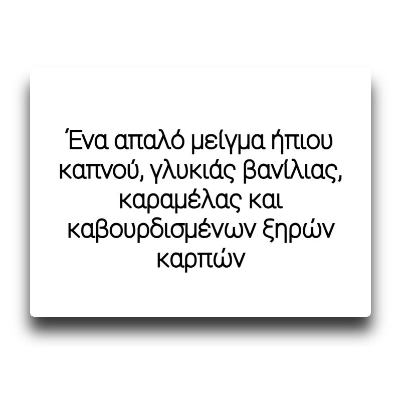 Ένα απαλό μείγμα ήπιου καπνού, γλυκιάς βανίλιας, καραμέλας και καβουρδισμένων ξηρών καρπών. Ισορροπημένο και ευχάριστο.