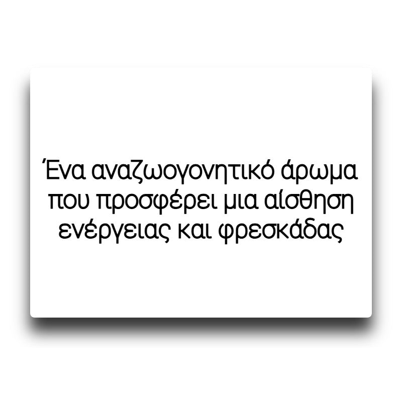 Ένα αναζωογονητικό άρωμα που προσφέρει μια αίσθηση ενέργειας και φρεσκάδας. Η γλυκύτητα και η αναζωογονητική του επίγευση δημιουργούν μια αίσθηση ζωντάνιας, ενώ η ελαφριά οξύτητα και η απαλή γεύση του προσφέρουν τονωτική ενίσχυση. Ιδανικό για στιγμές που χρειάζεσαι έναν “ηλεκτρικό” ενθουσιασμό και αίσθηση ανανέωσης.