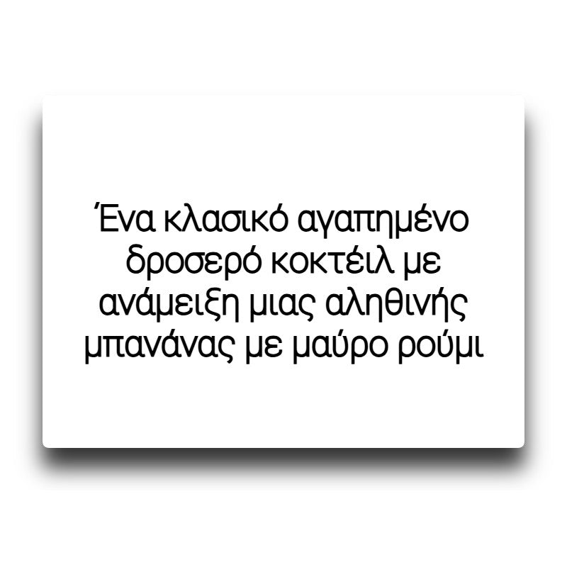 Ένα κλασικό αγαπημένο δροσερό κοκτέιλ με ανάμειξη μιας αληθινής μπανάνας με μαύρο ρούμι σε μοναδική αρμονία που μας δίνει ένα μοναδικό τροπικό ποτό με την υπογραφή της Steam City Liquids.