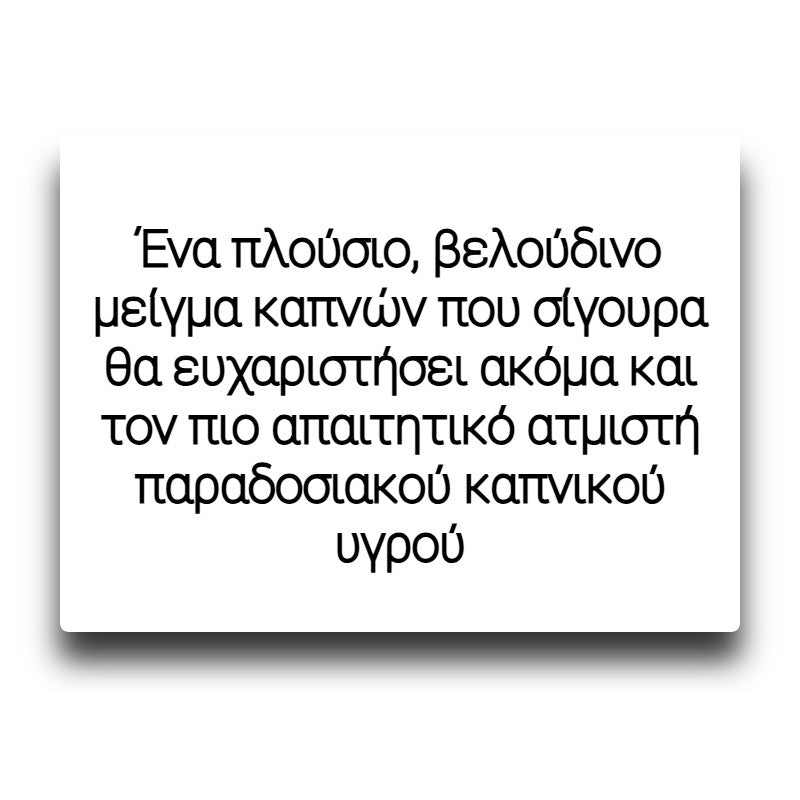 Ένα πλούσιο, βελούδινο μείγμα καπνών που σίγουρα θα ευχαριστήσει ακόμα και τον πιο απαιτητικό ατμιστή παραδοσιακού καπνικού υγρού για all-day vaping άτμισμα!