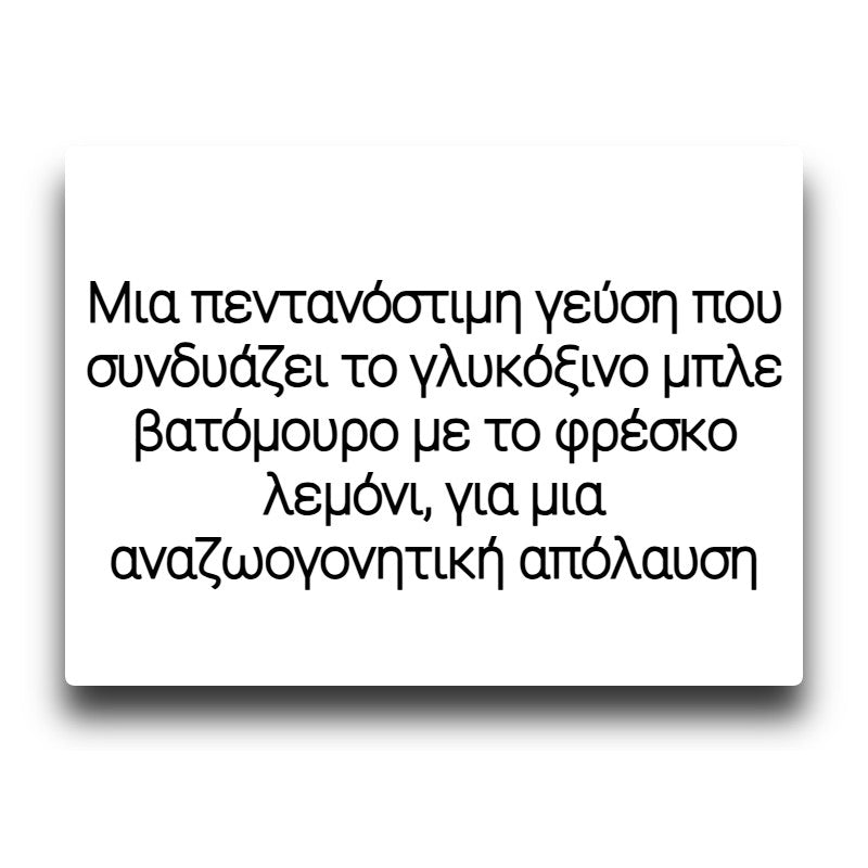 Μια πεντανόστιμη γεύση που συνδυάζει το γλυκόξινο μπλε βατόμουρο με το φρέσκο λεμόνι, για μια αναζωογονητική απόλαυση.