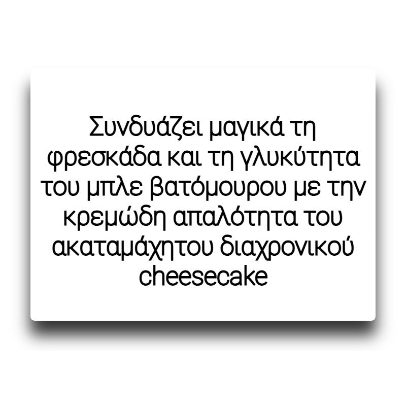 Το “Blueberry Cheesecake” συνδυάζει μαγικά τη φρεσκάδα και τη γλυκύτητα του μπλε βατόμουρου με την κρεμώδη απαλότητα του ακαταμάχητου διαχρονικού cheesecake. Κάθε εισπνοή απογειώνει τις αισθήσεις.