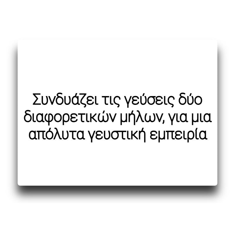 Η διπλή απόλαυση της “Double Apple” συνδυάζει τις γεύσεις δύο διαφορετικών μήλων, για μια απόλυτα γευστική εμπειρία.