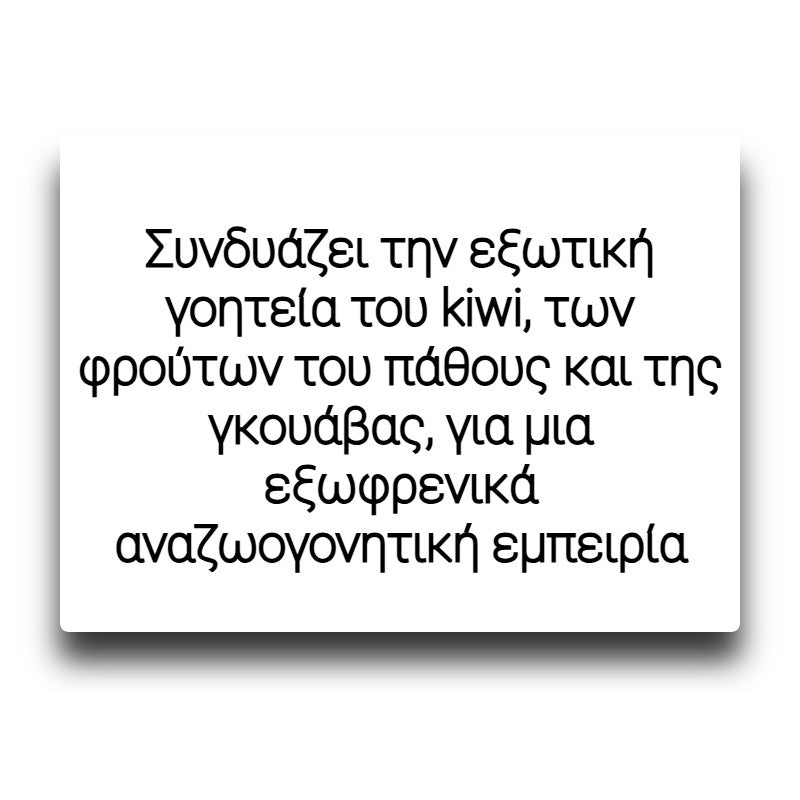 Αφεθείτε σε αυτήν τη μοναδική γεύση, η οποία συνδυάζει την εξωτική γοητεία του kiwi, των φρούτων του πάθους και της γκουάβας, για μια εξωφρενικά αναζωογονητική εμπειρία.