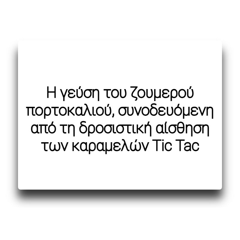 Η γεύση του ζουμερού πορτοκαλιού, συνοδευόμενη από τη δροσιστική αίσθηση των καραμελών “Tic-Tac”, θα σας ταξιδέψει σε μια απόλυτη εμπειρία γεμάτη ευχαρίστηση και αναζωογόνηση.