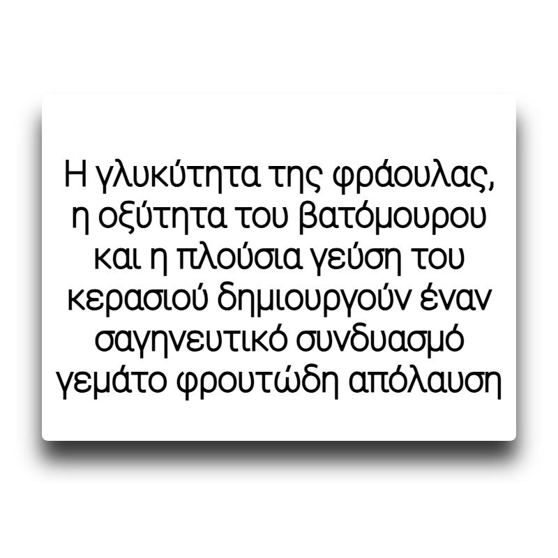 Το όνειρο κάθε λάτρη των μούρων! Η γλυκύτητα της φράουλας, η οξύτητα του βατόμουρου και η πλούσια γεύση του κερασιού δημιουργούν έναν σαγηνευτικό συνδυασμό γεμάτο φρουτώδη απόλαυση.