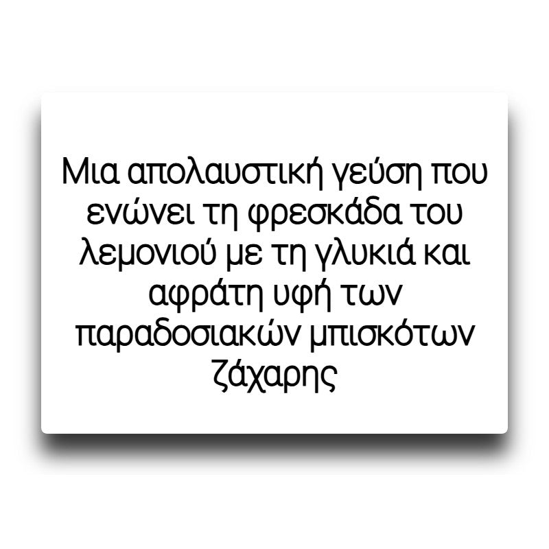 Μια απολαυστική γεύση που ενώνει τη φρεσκάδα του λεμονιού με τη γλυκιά και αφράτη υφή των παραδοσιακών μπισκότων ζάχαρης. Ένας συναρπαστικός συνδυασμός που θα σας μαγέψει.
