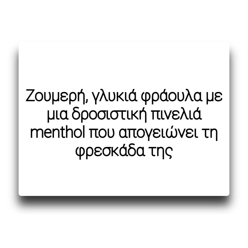Το The King συνδυάζει τη ζουμερή, γλυκιά φράουλα με μια δροσιστική πινελιά menthol που απογειώνει τη φρεσκάδα της. Ένα άρωμα αναζωογονητικό, έντονο και ισορροπημένο, ιδανικό για όσους λατρεύουν τα φρουτώδη με cool twist.
