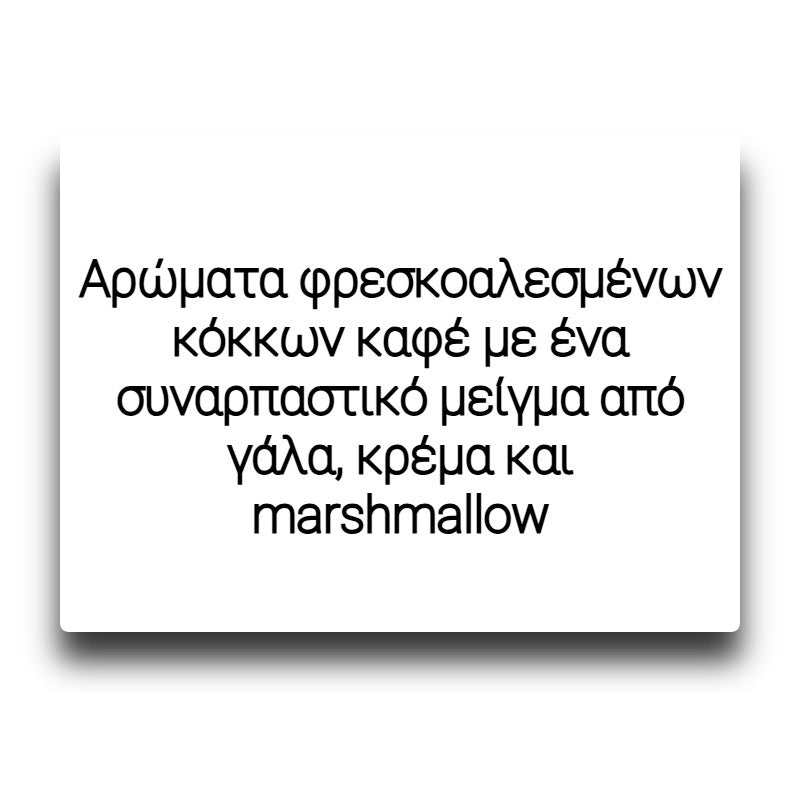 Για όλους τους λάτρεις του καφέ, αυτή η γεύση θα σας καθηλώσει από την πρώτη εισπνοή. Τα αρώµατα των φρεσκοαλεσµένων κόκκων καφέ θα κατακλύσουν τους γευστικούς σας κάλυκες, ενώ ένα συναρπαστικό µείγµα από γάλα, κρέµα και marshmallow θα ακολουθήσει. Είστε έτοιµοι να ζήσετε µια αξέχαστη εµπειρία γευστικής ηδονής σε ένα συναρπαστικό ταξίδι!