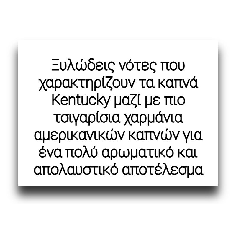 Ξυλώδεις νότες που χαρακτηρίζουν τα καπνά Kentucky μαζί με πιο τσιγαρίσια χαρμάνια αμερικανικών καπνών για ένα πολύ αρωματικό και απολαυστικό αποτέλεσμα